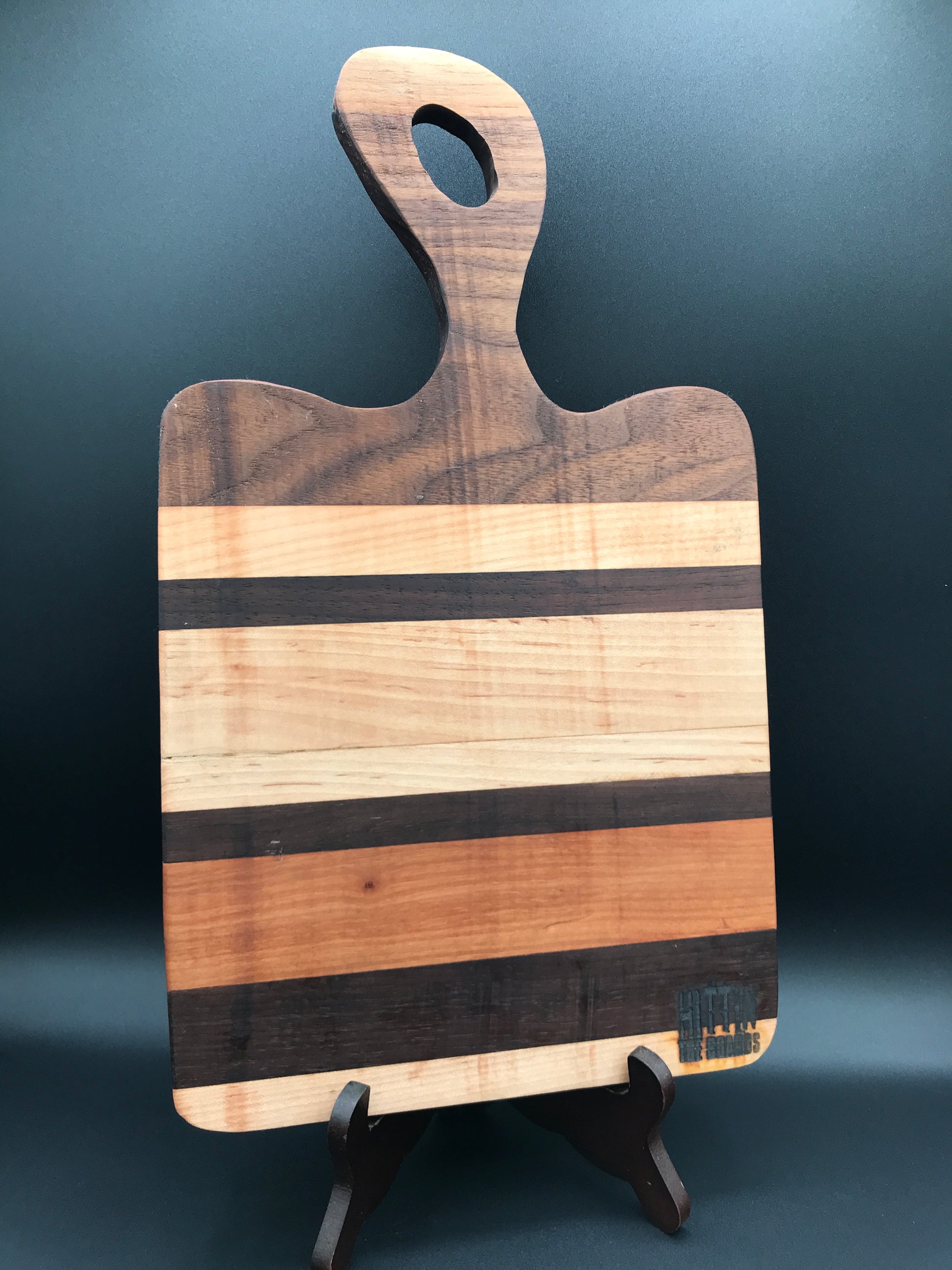 Handled Charcuterie/Cutting Board with Walnut, Maple and Cherry