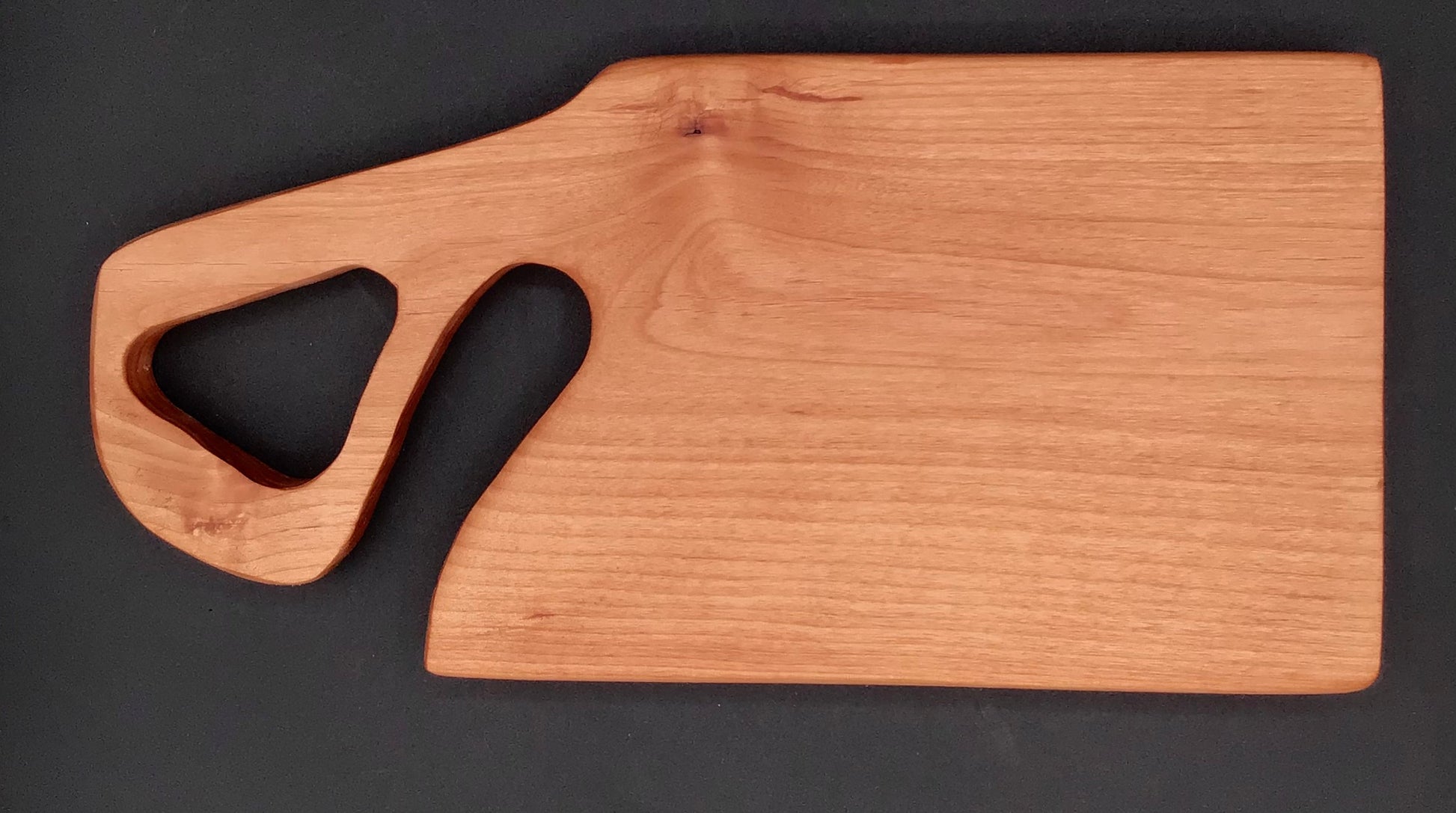 Meet the board that brings the fun to the kitchen. Handcrafted with a swooping, sculptural handle, this piece is part cutting board, part conversation starter. Its warm, golden grain and quirky silhouette make prepping snacks feel a little more joyful—and serving them downright charming. Whether it’s cheese, cookies, or a quick snack, this board is ready to show off.